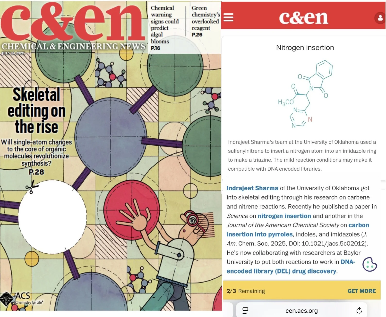 Read our skeletal editing paper in Science free of charge HERE! Congratulations to all the authors! Read more on our features from C&EN News and OU News