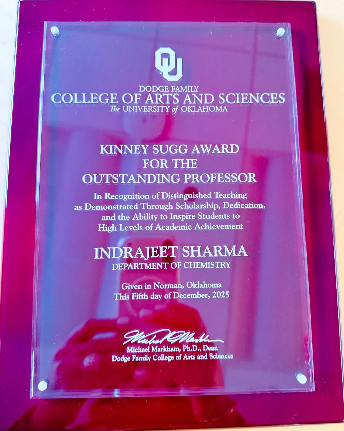 A big congratulations to Dr. Sharma for winning the Presidential Award at OU.