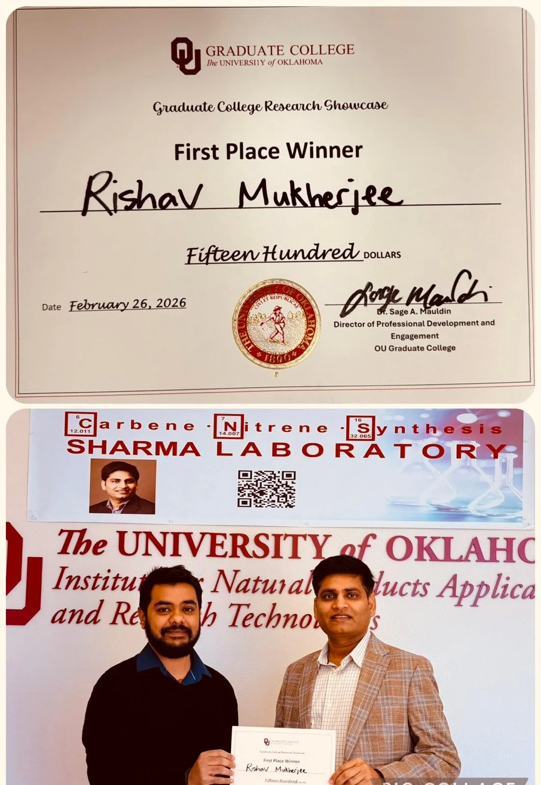 Congratulations to Rishav Mukherjee for winning the Graduate College Research Showcase in Spring 2026.
